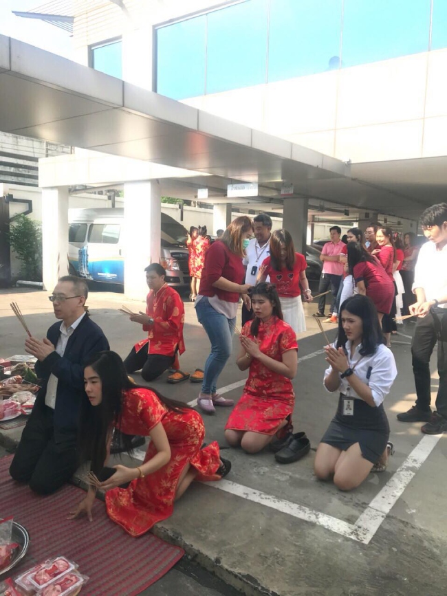 พนักงานทุกท่านร่วมไหว้สักการะศาลเจ้าที่