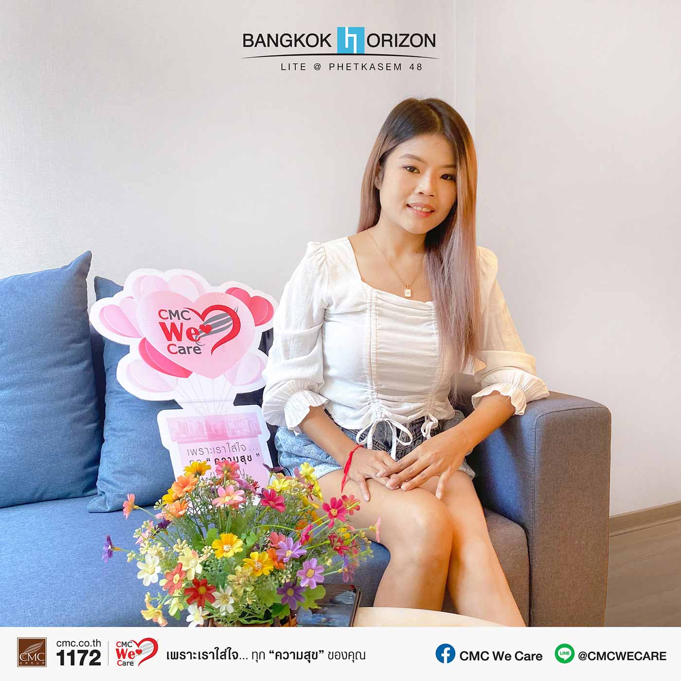 ด้วยความที่เป็นสตรีมเมอร์ ทำให้ต้องใช้สายตาจดจ่ออยู่กับหน้าจอค่อนข้างเยอะ ไม่ว่าจะเป็นทั้งคอมและมือถือ จึงมองหาคอนโดที่มีมุมให้ผ่อนคลายสายตาที่มองลงมาได้จากบนห้อง และเมื่อได้มาชมโครงการ Bangkok Horizon Lite @Phetkasem 48 ก็พบว่ามีห้องที่ตอบโจทย์ เนื่องจากได้ห้องที่มองลงมาเห็นส่วนกลางที่เป็นเหมือนลากูน มีกลิ่นอายความเป็นบาหลีนิดๆ เหมือนอยู่มัลดีฟ มีหาดทรายขาวๆ เหมือนอยู่คอนโดริมทะเลจริงๆ และที่สำคัญชอบตัวสระว่ายน้ำที่เป็นระบบเกลือ เพราะแพ้คอลลีน ทำให้สามารถลงว่ายน้ำได้ด้วย และด้านบนยังเป็นฟิตเนสที่ดีไซน์คู่กับตัวสระว่ายน้ำได้สวยมาก