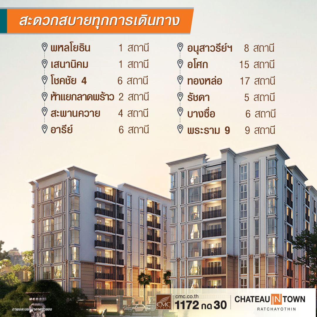 เพราะโครงการอยู่ใกล้ BTS สถานีเสนานิคม หรือสถานีรัชโยธิน เส้นสายสีเขียว สามารถเข้าออกด้วยถนนหลายเส้นทาง ให้คุณสามารถใช้ชีวิตใจกลางเมืองได้อย่างสะดวกสบาย จะไปทำงาน ช้อปปิ้งหรือแฮงเอาต์ก็สามารถทำได้ง่าย ๆ ไม่ต้องปวดหัวเรื่องการเดินทาง