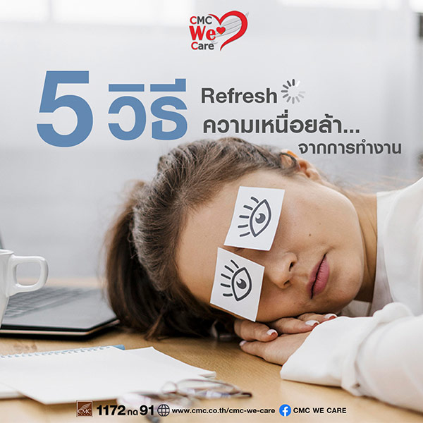 เชื่อว่ามนุษย์ออฟฟิศหลายคนเครียดกับงานหลัก ประชุม ออกไปพบลูกค้า และต้องเครียดกับงานเร่งด่วนที่ยังไม่เสร็จ ไหนจะต้องเผชิญกับการเดินทางไปทำงาน…รถติด ฝนตก กว่าจะได้กลับถึงบ้าน พลังงานแถมไม่เหลือ วันนี้…CMC มาเเชร์ 5 วิธี refresh ความเหนื่อยล้า..จากการทำงาน ให้ทุกคนกลับมามีพลังกายและใจ..ในการทำงานอีกครั้ง!