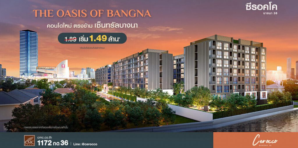 สนใจโครงการ Cerocco Bangna สามารถสอบถามข้อมูลเพิ่มเติมได้ที่ www.cmc.co.th หรือ FB: Cerocco Bangna และ Call Center : 1172 กด 36