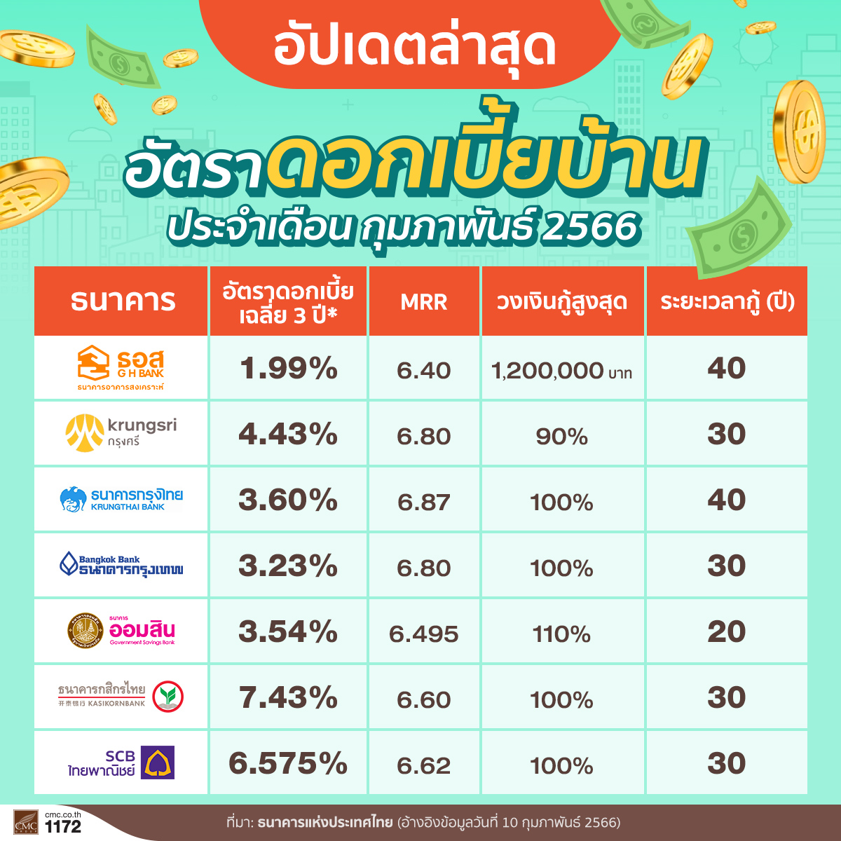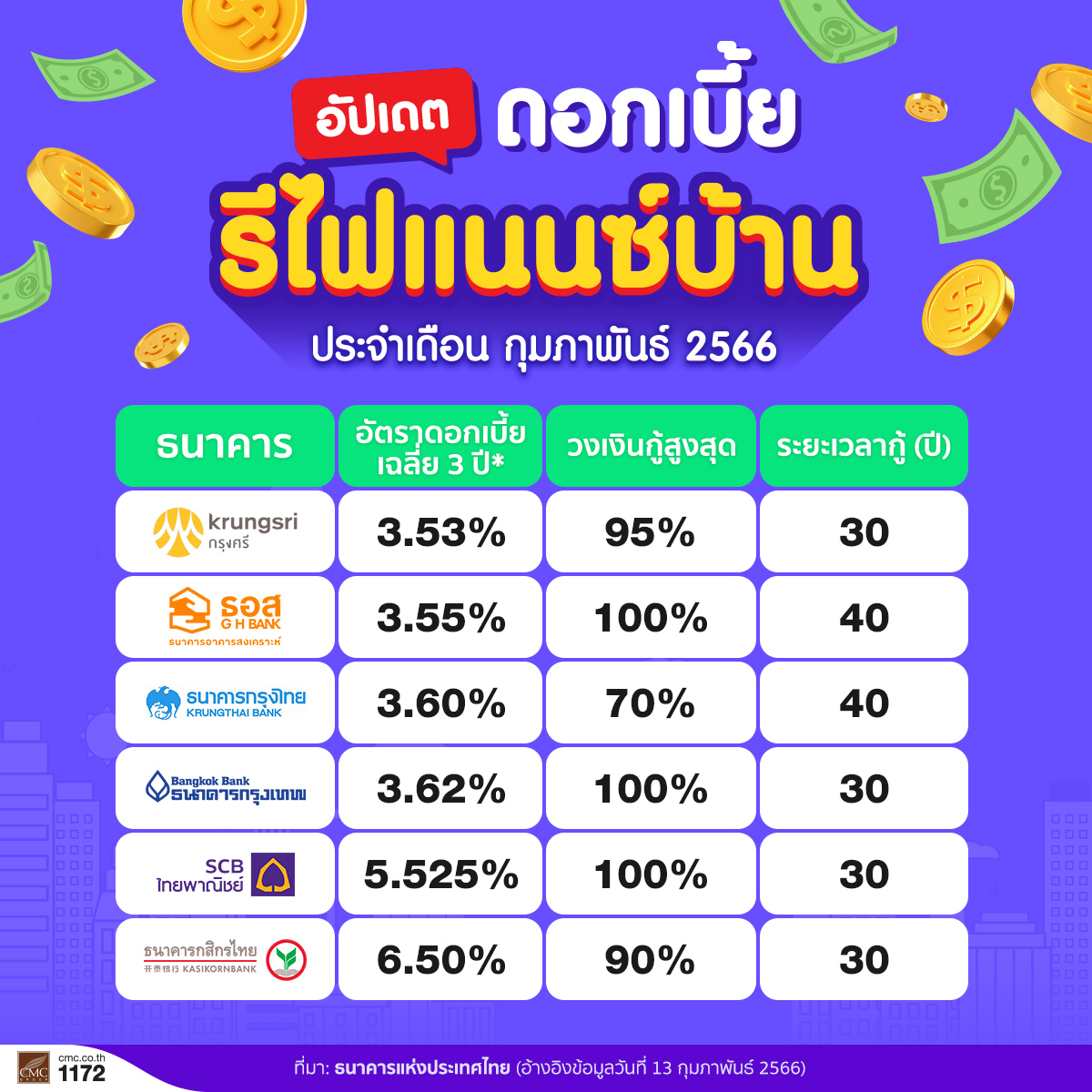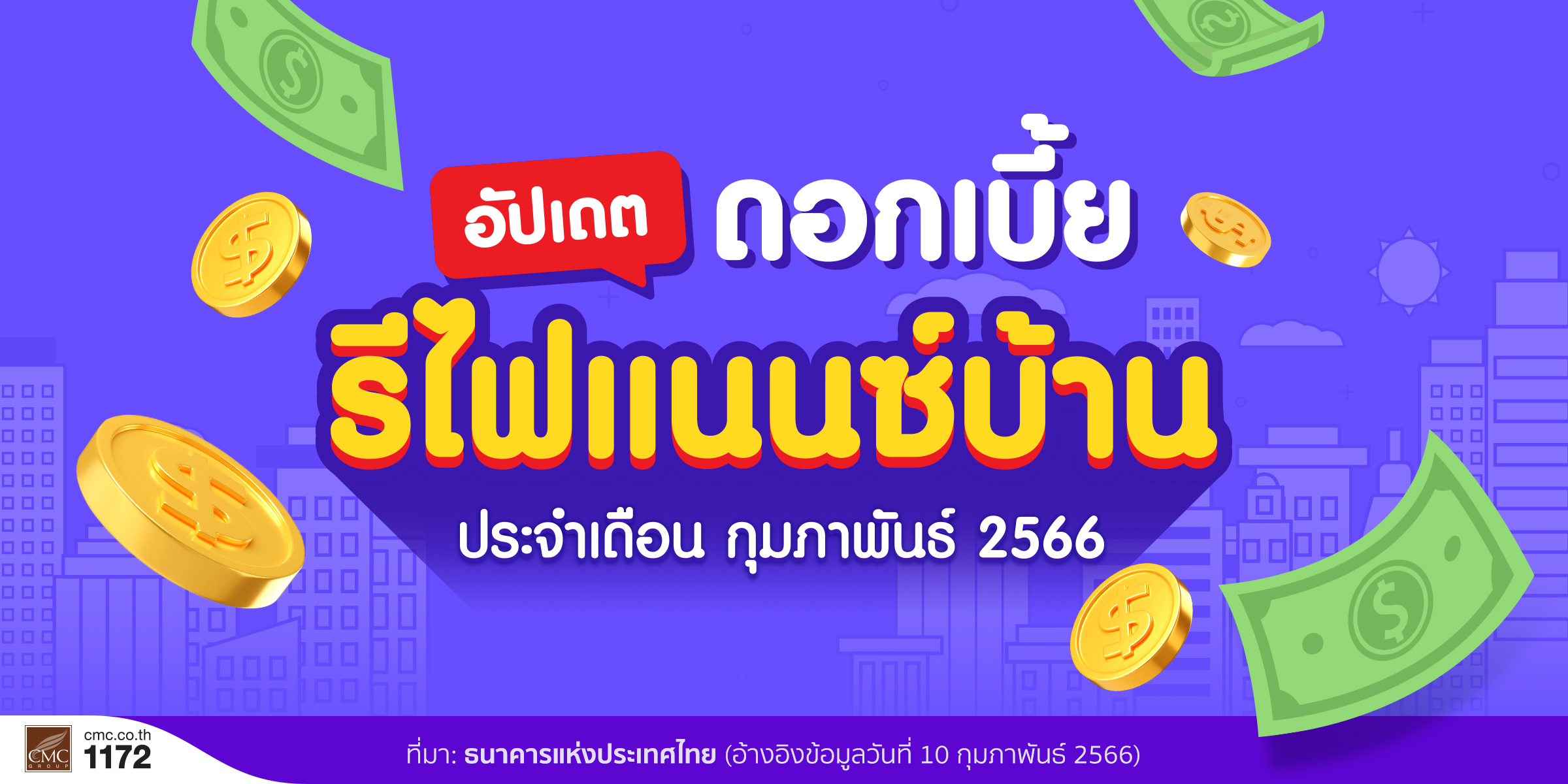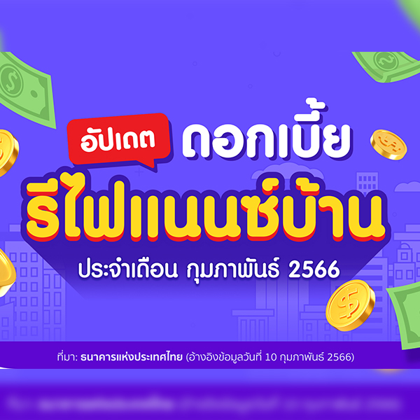 อัปเดตดอกเบี้ย รีไฟแนนซ์บ้าน ประจำเดือนกุมภาพันธ์ 2566