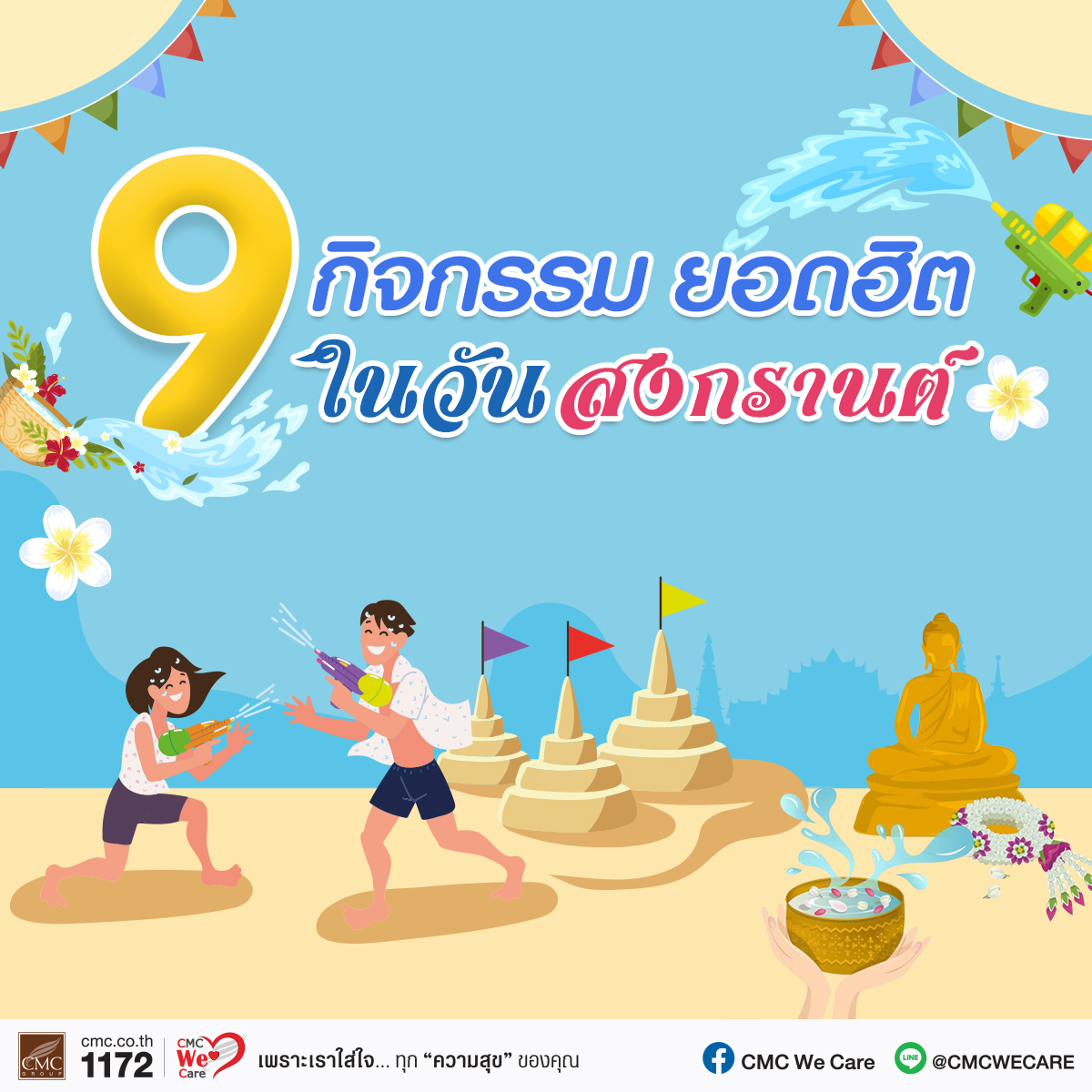 เวียนมาอีกรอบสำหรับเทศกาลวันสงกรานต์หรือวันปีใหม่ไทย ซึ่งปีนี้ตรงกับวันหยุดสุดสัปดาห์ทำให้มีวันหยุดยาวๆ 5 วันกันไปเลย หลายๆคนคงจะมีแพลนไปทำกิจกรรมต่างๆในช่วงวันหยุดยาวนี้แล้ว แต่สำหรับลูกบ้าน CMC ท่านไหนยังไม่มีแพลนจะทำอะไร ไม่ต้องกังวลไปค่ะ วันนี้ CMC We Care ได้เตรียมลิสต์กิจกรรมยอดฮิตในวันสงกรานต์ที่น่าสนใจมาให้เรียบร้อย ดังนี้ค่ะ