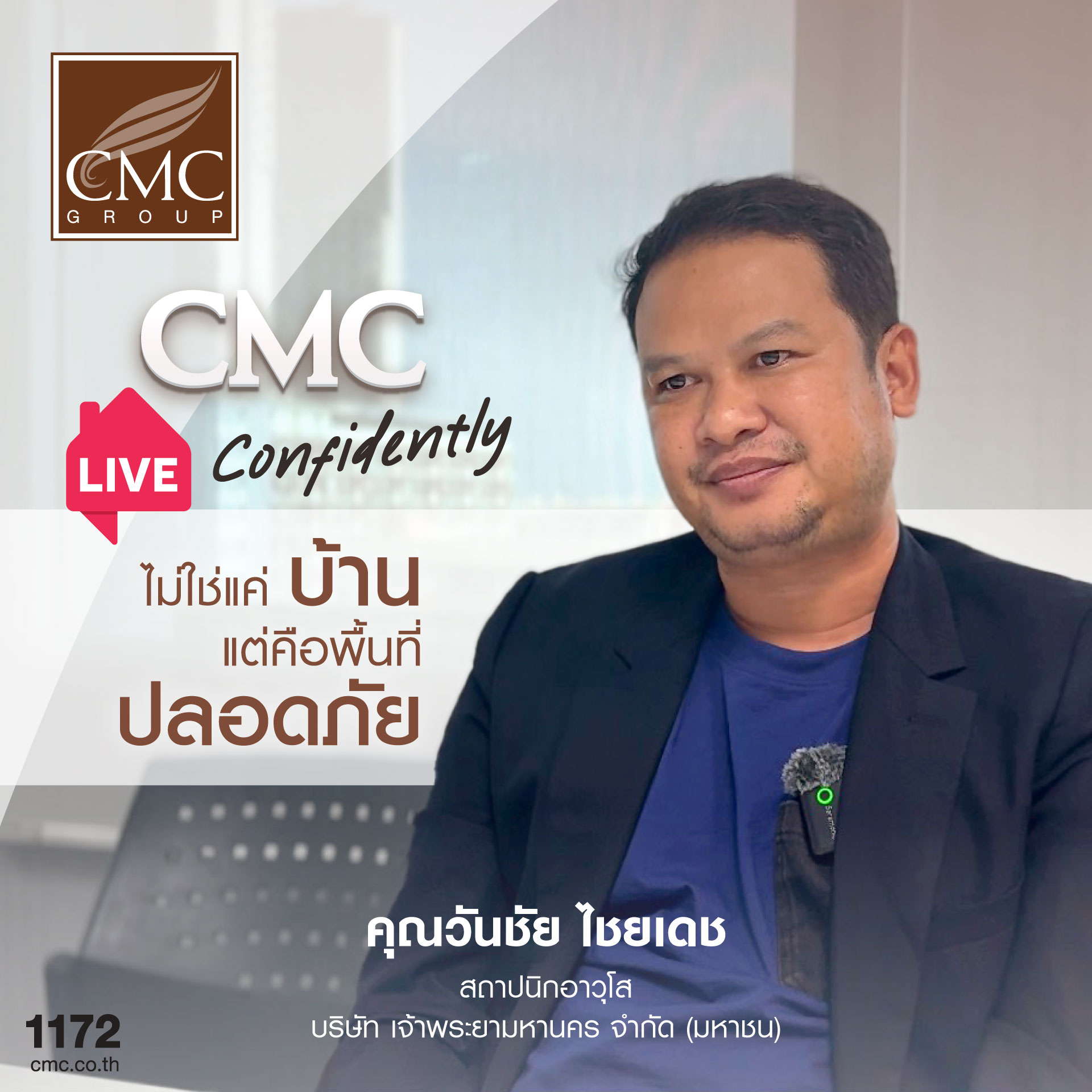 ในทุก ๆ วันที่คุณก้าวเข้าไปในบ้าน CMC Group เราอยากให้คุณรู้สึกถึงความอุ่นใจ ความมั่นคงแข็งแรง และความสุขที่โอบอุ้มคุณไว้ตลอดเวลา เราใส่ใจทุกรายละเอียด เริ่มต้นตั้งแต่การออกแบบไปจนถึงการก่อสร้าง โดยคำนึงถึงความปลอดภัยสูงสุด เพราะ “CMC Live Confidently ไม่ใช่แค่บ้าน แต่คือพื้นที่ปลอดภัย”