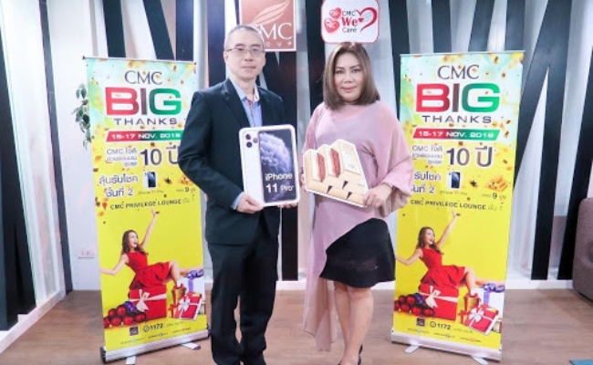 สำหรับแคมเปญ CMC BIG THANKS : CMC ใจดีช่วยผ่อนคอนโดนาน 10 ปี และลุ้นรับ Iphone 11 pro และทองคำหนักรวม 9 บาท เพื่อมอบสิทธิ์พิเศษสำหรับลูกค้าที่จองและทำสัญญาภายในวันที่ 15 ธันวาคม 2562 ซึ่งแคมเปญนี้จัดขึ้นเมื่อวันที่ 11 – 15 พฤศจิกายน 2562 ที่ CMC Privilege lounges โรงภาพยนตร์ Iconcineconic ชั้น 7 ICONSIAM หรือ ทุกโครงการในเครือ CMC โดยได้รับเสียงตอบรับจากลูกค้าเป็นอย่างดี